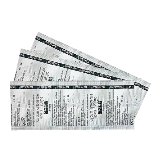IPCA Kerablak Tablet is a nutritional supplement formulated with Calcium Pantothenate (Vitamin B5), a nutrient commonly used to support hair, skin, and nail health. Vitamin B5 plays a role in keratin formation and helps maintain overall scalp nourishment as part of a balanced wellness routine. Designed for convenient daily use, the tablets provide nutritional support that helps maintain the appearance of stronger, healthier-looking hair and overall scalp wellness.
