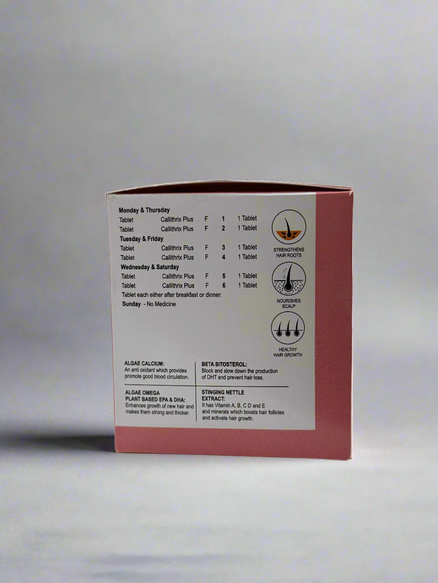 Cyclic therapy ensures your hair gets precisely what it needs, when it needs it. Instead of overwhelming your body with a daily dose of the same nutrients, Callithrix Plus offers a rotational cycle of targeted supplements spread over six days a week. Each tablet is meticulously formulated to address specific concerns, ensuring better absorption, reduced resistance, and optimal efficacy.