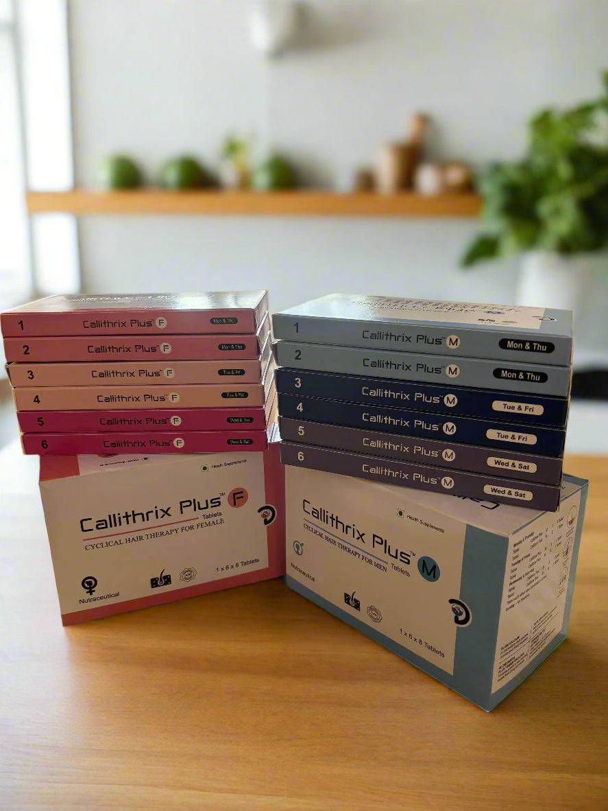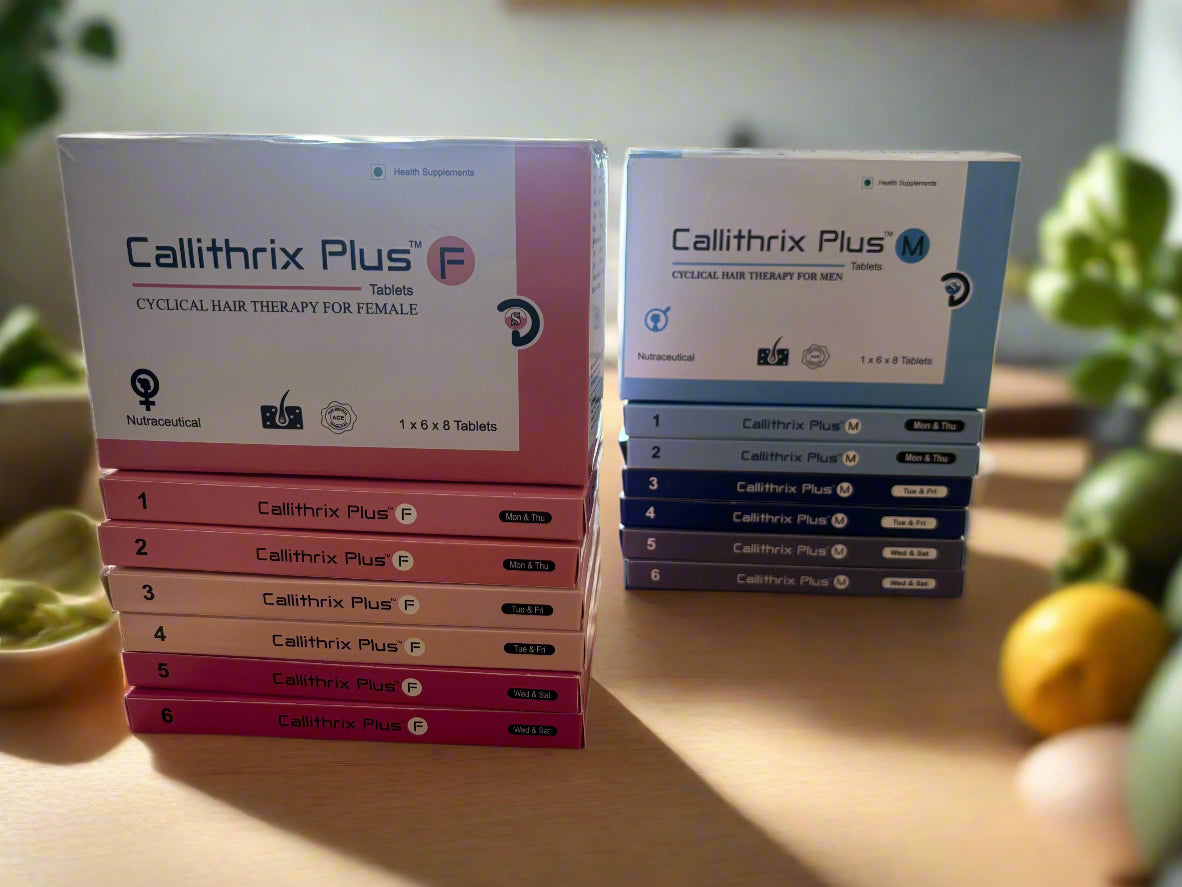 Hair loss, thinning, and slow regrowth are common challenges faced by women today, often triggered by hormonal imbalances, nutritional deficiencies, and daily stressors. Callithrix Plus is not just another supplement—it's a cyclic hair therapy system designed exclusively for women, targeting hair health at the root level for long-lasting, visible results.