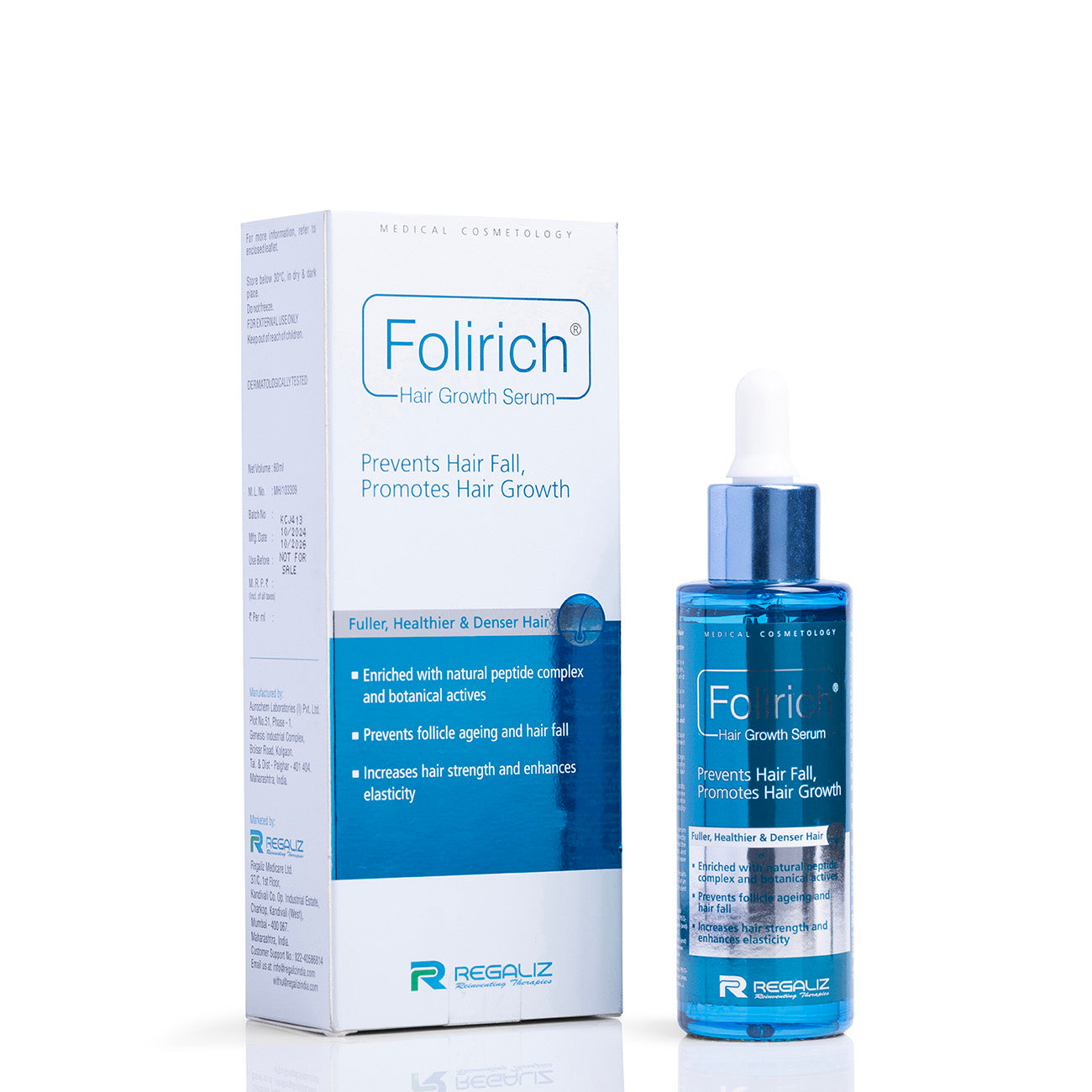 Folirich Hair Growth Serum is a potent, dermatologist-formulated serum enriched with natural peptides, botanical actives, and amino acids to stimulate hair follicles, prevent follicle aging, and reduce hair fall. Designed for both temporary and chronic hair loss, this lightweight serum strengthens strands from the root, improves scalp health, and supports visibly denser and fuller hair over time.